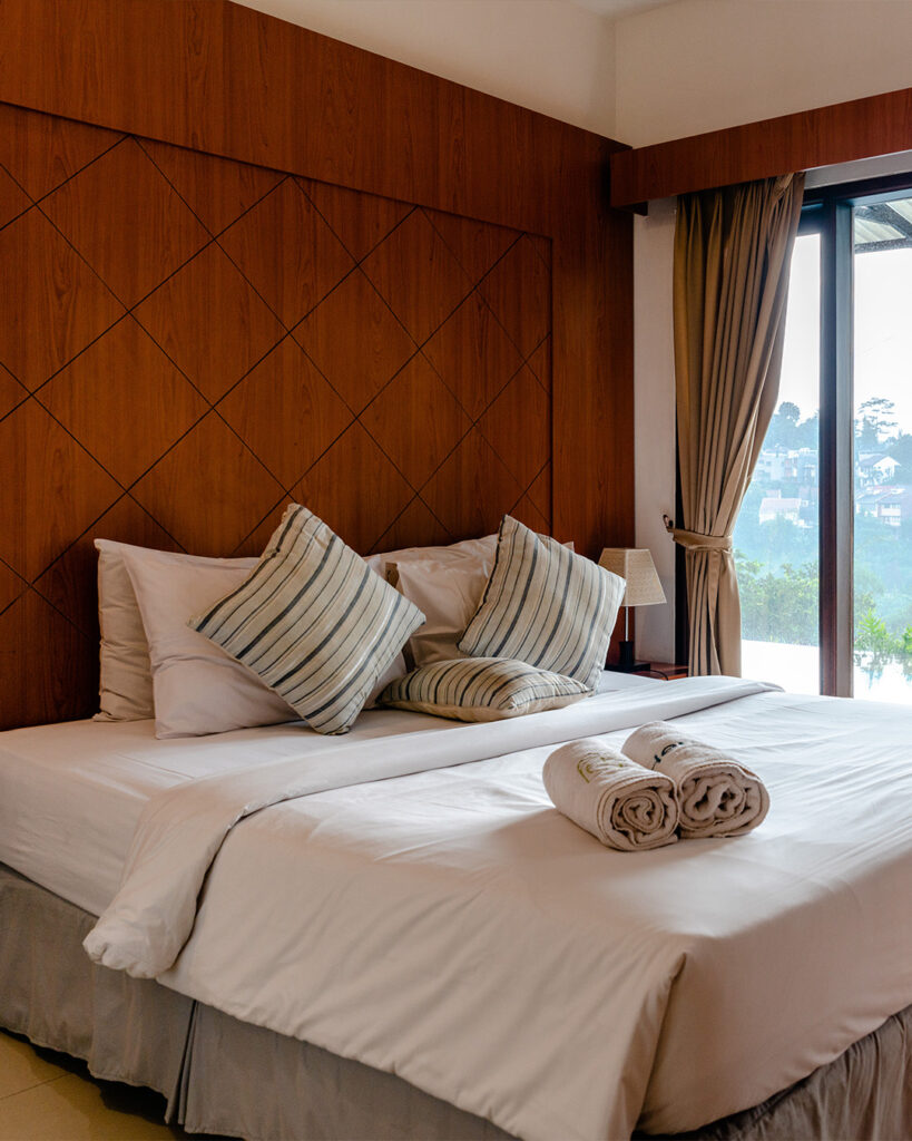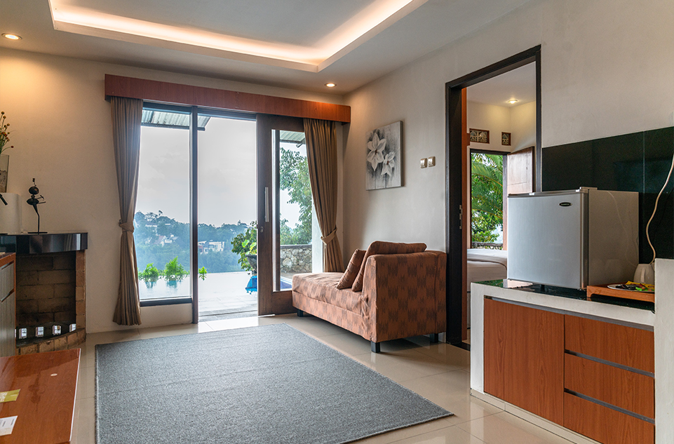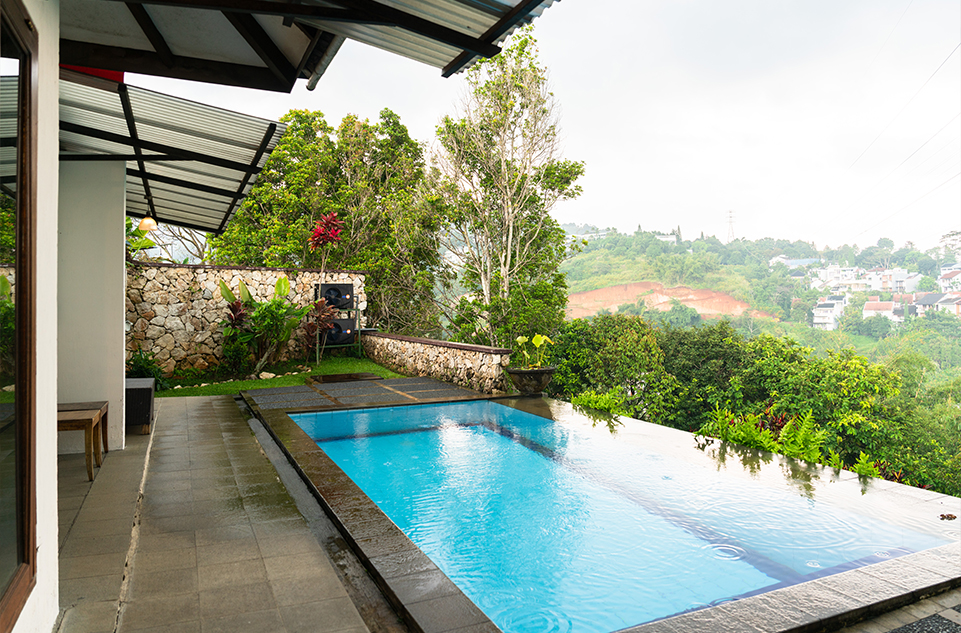 Discover your family retreat in our 2-bedroom villa, featuring a heated private pool, refreshing breezes, and stunning city views amidst lush greenery.